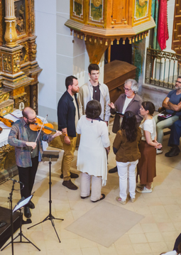 JOEL BARDOLET - Ha dedicat els últims anys a la investigació i estudi del llenguatge musical i la relació de la paraula i la música, des d'Ockeghem i el Renaixement fins als paisatges atemporals de Morton Feldmann. La seva relació de vida amb Jordi Móra li ha imprès una percepció de la vivència fenomenològica que és ben present en cada lectura seva d'un text musical. És el director musical del projecte Bach-Inventions de la prestigiosa companyia de dansa MalPelo, amb qui comparteix escenari i laboratori de treball regularment, experimentant la bellesa del gest, l'escolta honesta i integrant materials literaris, d'arquitectura i científics en el mètode de treball.