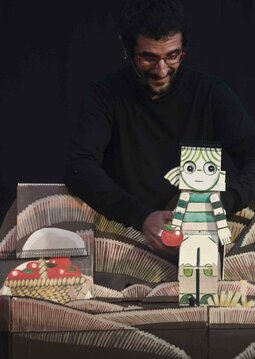 Una manzana, un manzano es un espectáculo multidisciplinar que trabaja la combinación de diferentes elementos: libretas ilustrada, títeres bidimensionales de papel, proyección en directo, stop-motion, títeres de sombra y música en directo.