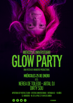 Glow party el próximo miércoles 25 de enero a partir de las 23:00h en El Varadero. Con Nerea de Toledo, Dj Artal y los chicos de Dirty Sou.